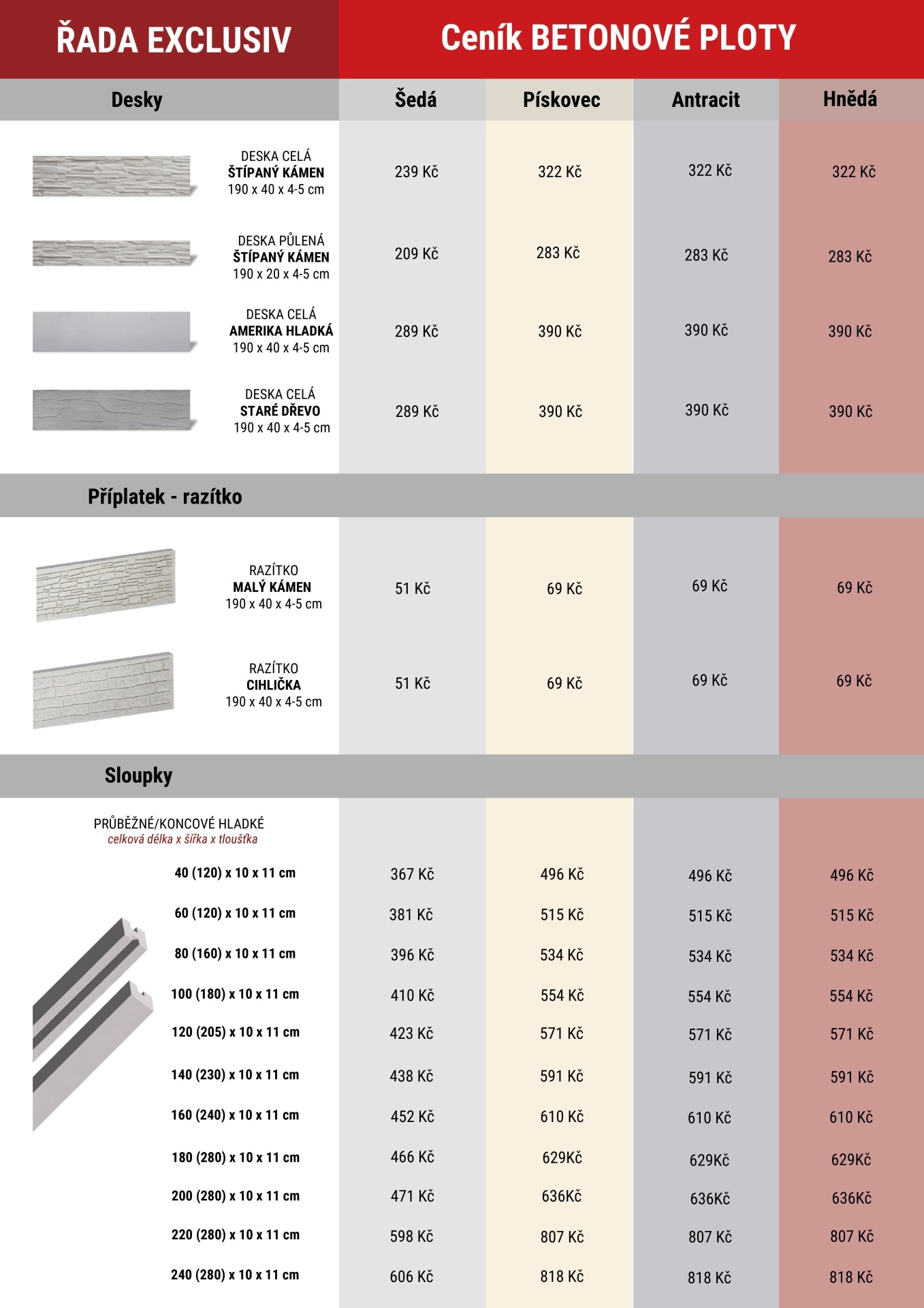 BETONOVÝ PLOT CENA - ŘADA EXCLUSIVE