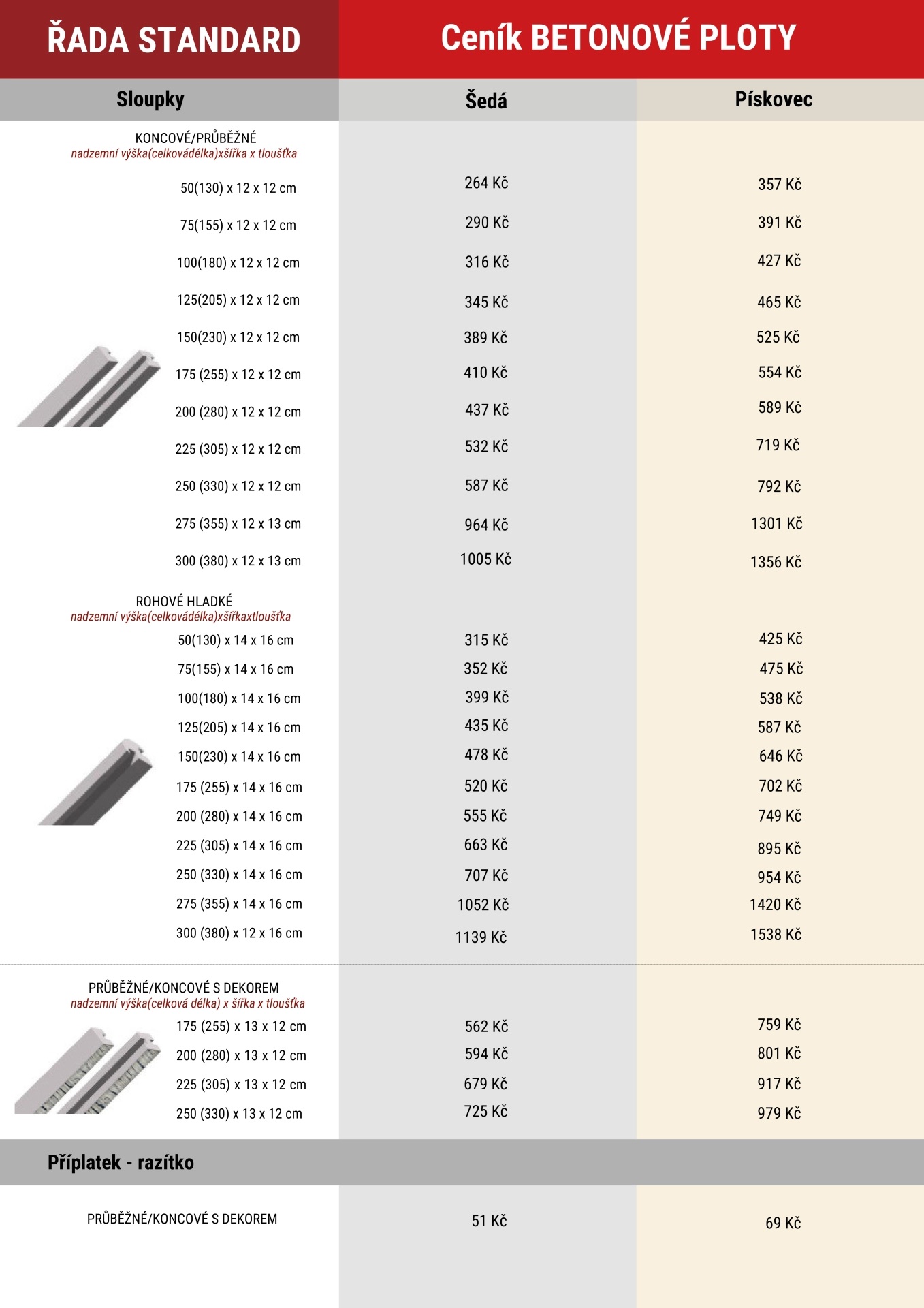 BETONOVÝ PLOT CENA - ŘADA STANDARD