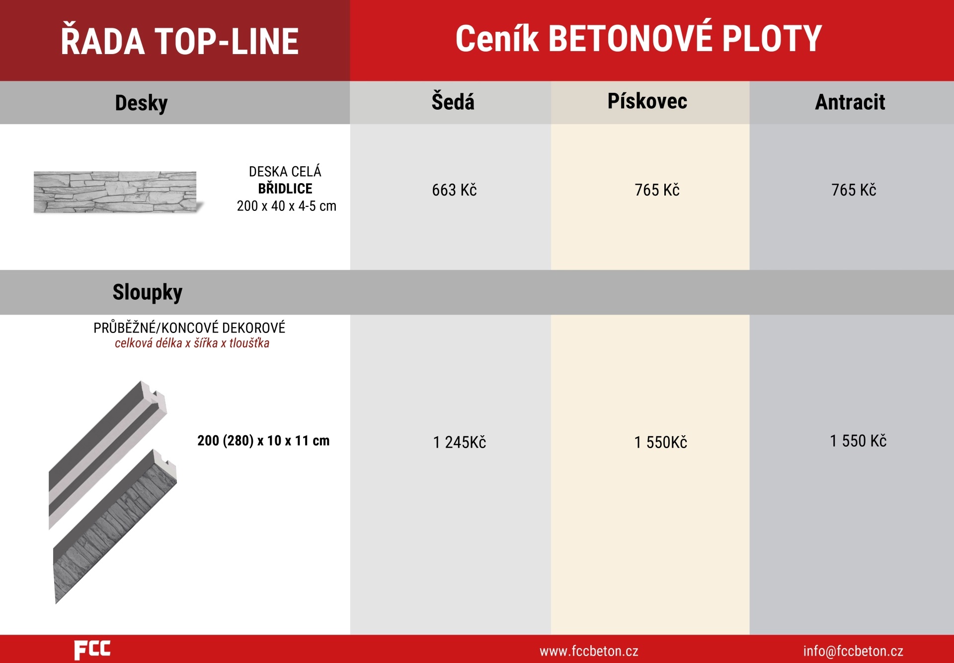 BETONOVÝ PLOT CENA - ŘADA TOP LINE